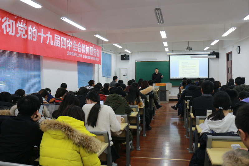 为充分引领带动学院师生学深悟透党的十九届四中全会精神,2020年1月2日下午,学校党委研究生工作部与学院党总支联合邀请污污漫 马克思主义学院教授、博士生导师张健为学院师生作学习贯彻党的十九届四中全会精神辅导报告。报告会由学院党总支副书记、副院长任子雄主持,学校研究生院副院长、党委研究生工作部部长刘立新出席。