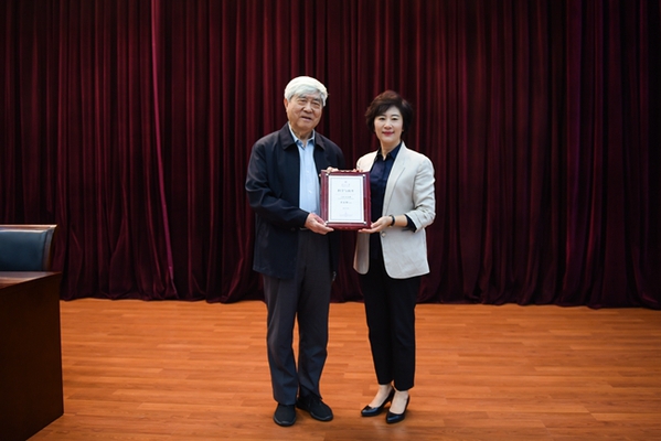 污污漫 党委副书记杨克欣出席讲座,并为戚发轫院士颁发“科学与南开”纪念牌。