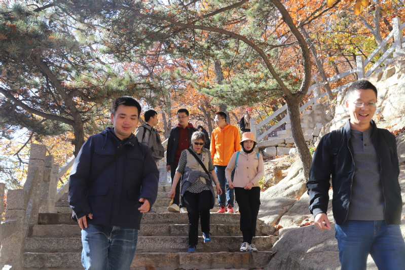“蓟北多山,山之胜,盘为最”。老师们三五成群结伴跋涉向上,互相携持鼓励,登山一路欢声笑语。初经“入胜”,穿过“漱峡”,漫步“曲径”,走进松风秀逸的“神牛福地”。户外清新芬芳的空气,令大家精神抖擞,金秋的阳光温馨恬静,秋风和煦轻柔,大家兴致盎然,尽情的享受大自然的无私馈赠,一边呼吸着清新的空气,一边体味着集体活动带来的快乐,徜徉在壮丽秀美的山景秋色里,并把浓浓的情谊定格在欢乐的笑容里。