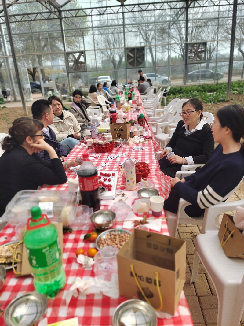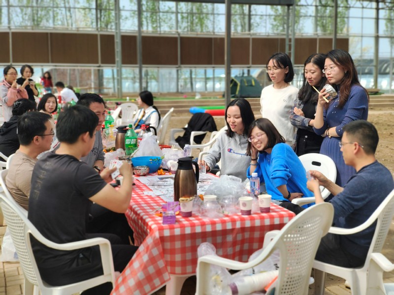 老师们自由分成“烧烤大厨”、“棋牌大师”、“采摘踏青”、“只言片语”“畅谈热聊”等小组开始活动。“烧烤大厨”组轮流上阵,互相合作,享受烧烤的乐趣,在炊烟袅袅中烤制出春天的美味。“棋牌大师”组时而眉头紧锁,细算牌局现状,时而放声大笑,为胜利欢呼。在各种花色的交错间,老师们忘记城市的喧嚣,沉浸于牌局,放松心情,拉近距离。“采摘踏青”组向着春的五彩斑斓奔去,迎着和煦的春风,看小草奋力探出,去采摘棚亲手摘下属于春天最新鲜的果实。“只言片语”组用语言的艺术描述画卡中的自己,从自己的角度解读迷惑的卡片,在选择和描述间,丰富了大家的文化生活,也增进了情感交流。“畅谈热聊”组,三五老师坐在一起,喝茶聊天,畅谈脚下和远方。