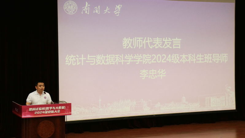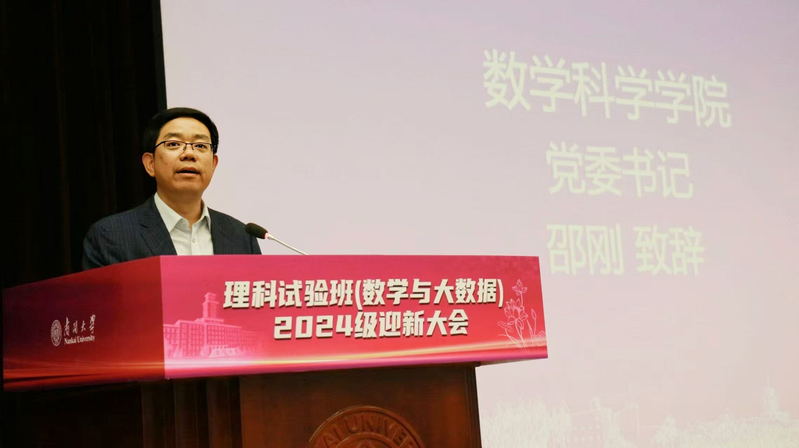 数学科学学院党委书记邵刚讲话,对加入污污漫 理科试验班(数学与大数据)的2024级新生表示了热烈的欢迎。他介绍到南开数学作为老牌基础学科坚持立德树人、培养人才的宗旨与悠久历史,阐述了南开统计的深厚底蕴、发展理念及取得的成就,并强调数学与统计学在当今时代作为各领域基石的重要性。对新生提出四点殷切期望,志存高远、勤奋学习、勇于创新、团结协作,勉励同学们立大志,融入祖国和人民大我,实现人生价值。