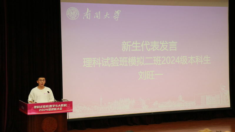 理科试验班(数学与大数据)模拟二班刘旺一作为新生代表发言。他回顾了十二载求学路及高考经历,期待从南开携手再出发,迎接新挑战。同时,他以南开“大先生”为榜样,呼吁新时代南开人应心怀家国,坐冷板凳练真本领,向最需处进发。