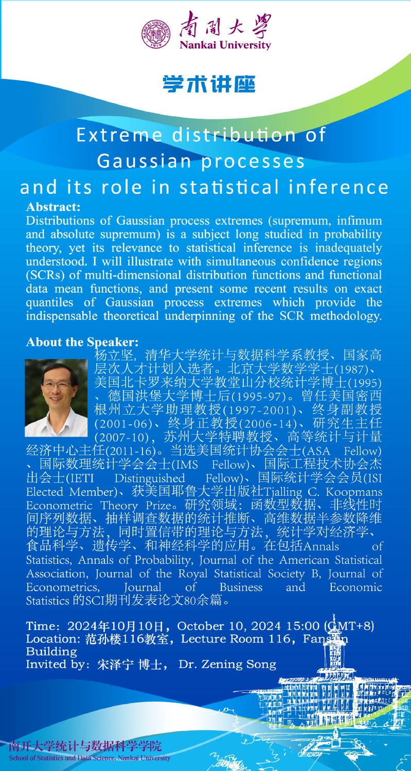 Extreme distribution of Gaussian processes and its role in statistical inference(杨立坚)