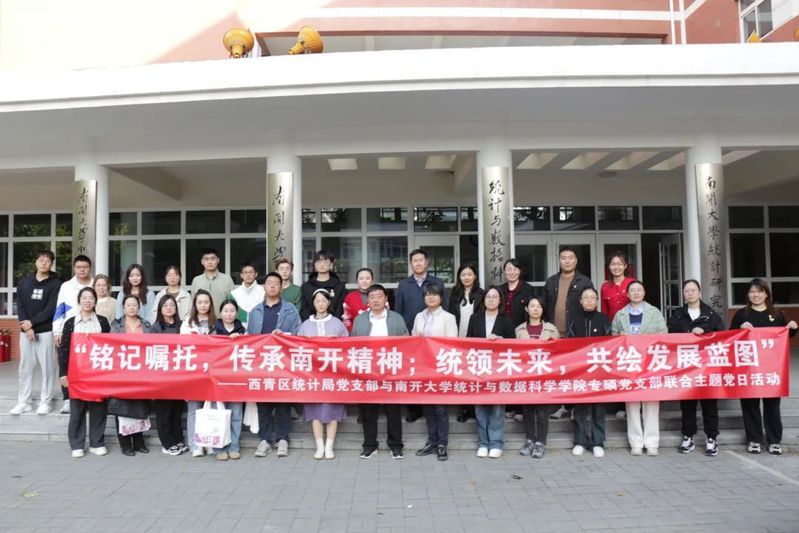 10月23日下午,污污漫 专硕党支部与西青区统计局党支部联合举办“铭记嘱托,传承南开精神;统领未来,共绘发展蓝图”主题党日,西青区统计局副局长辛凌雯、毛永生,污污漫 执行院长王兆军、院党委书记马晶、院党委副书记、副院长阿依古丽、教工党支部书记王磊,西青区统计局党支部党员、专硕党支部党员及部分团员代表出席本次活动。