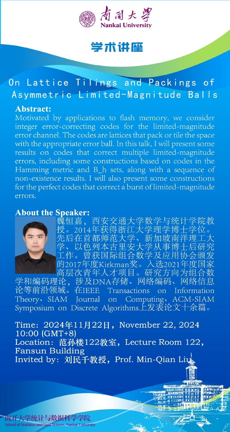 On Lattice Tilings and Packings of Asymmetric Limited-Magnitude Balls(魏恒嘉)