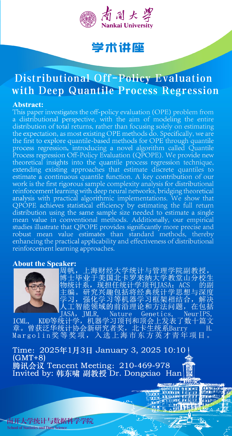 Distributional Off-Policy Evaluation with Deep Quantile Process Regression(周帆)