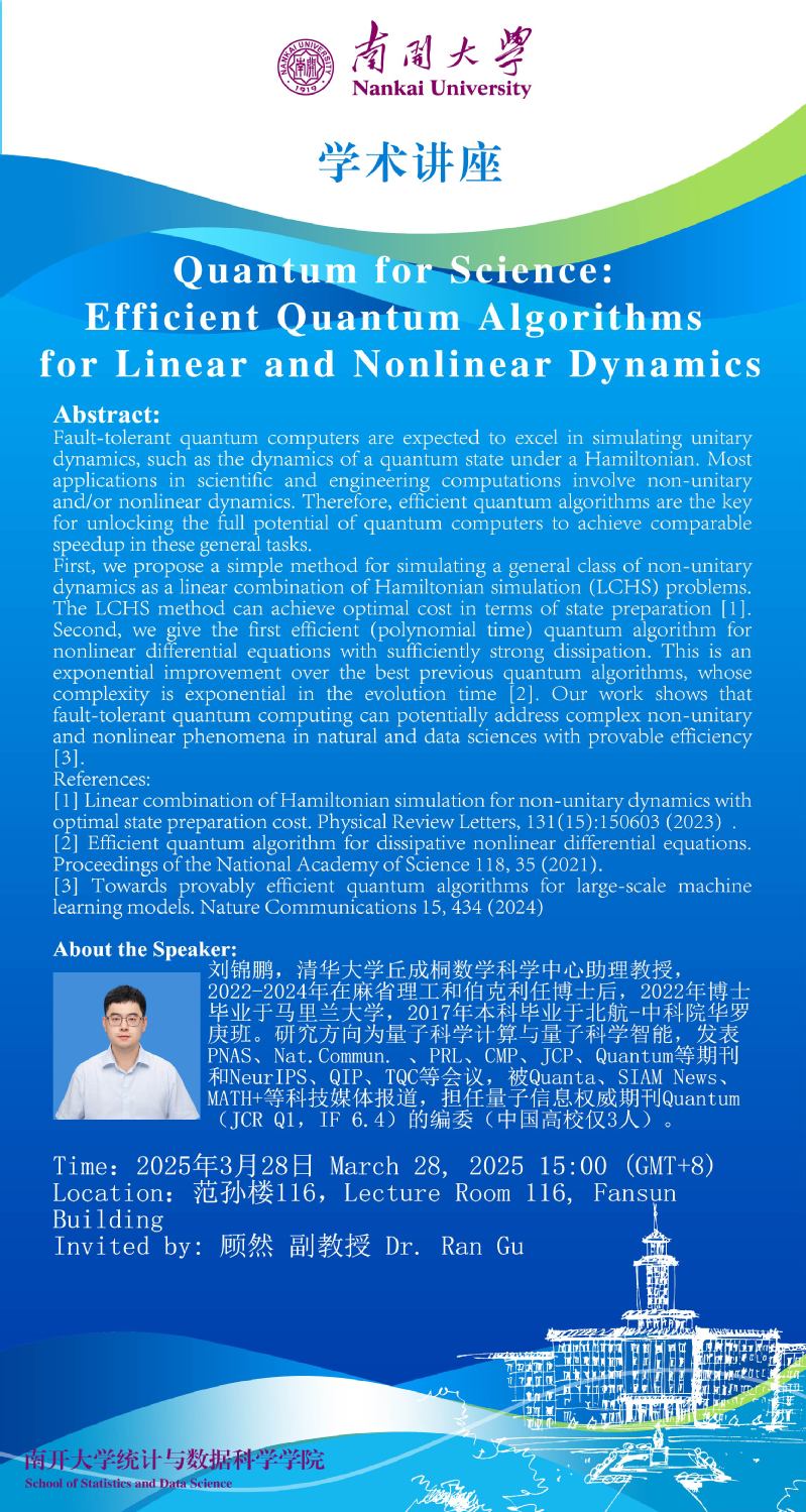Quantum for Science: Efficient Quantum Algorithms for Linear and Nonlinear Dynamics(刘锦鹏)