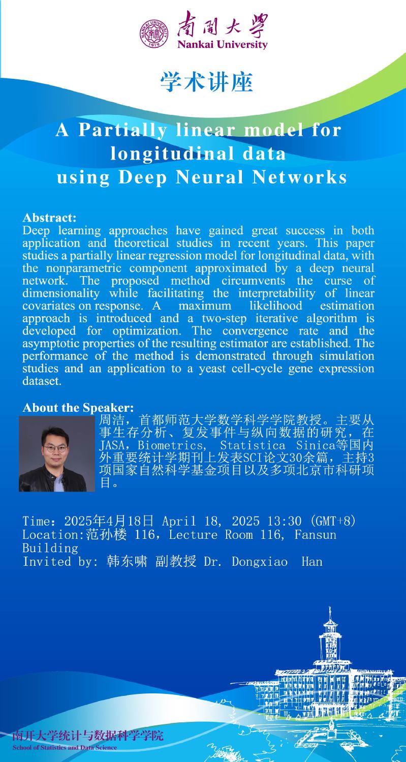 A Partially linear model for longitudinal data using Deep Neural Networks(周洁)