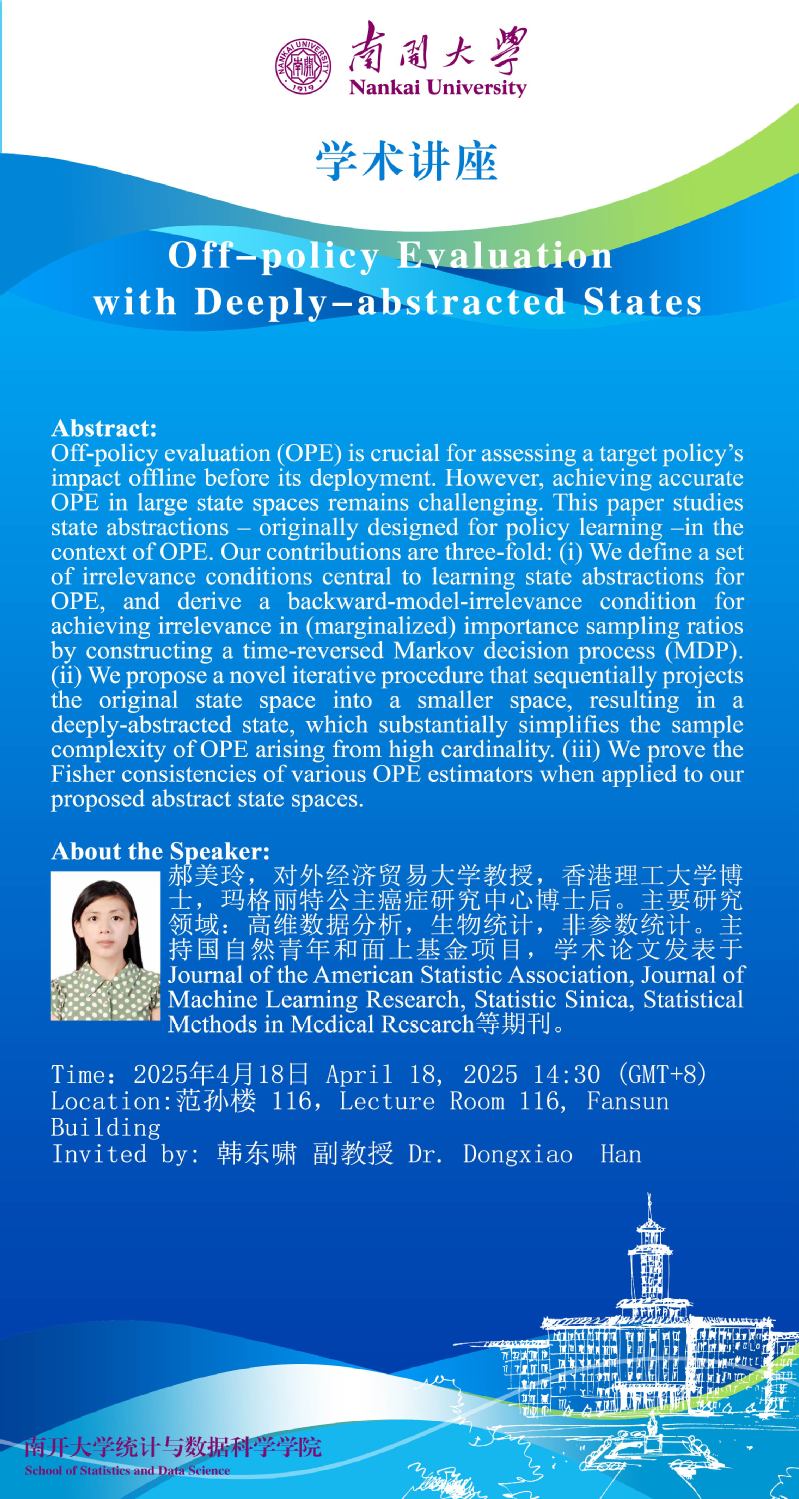Off-policy Evaluation with Deeply-abstracted States(郝美玲)