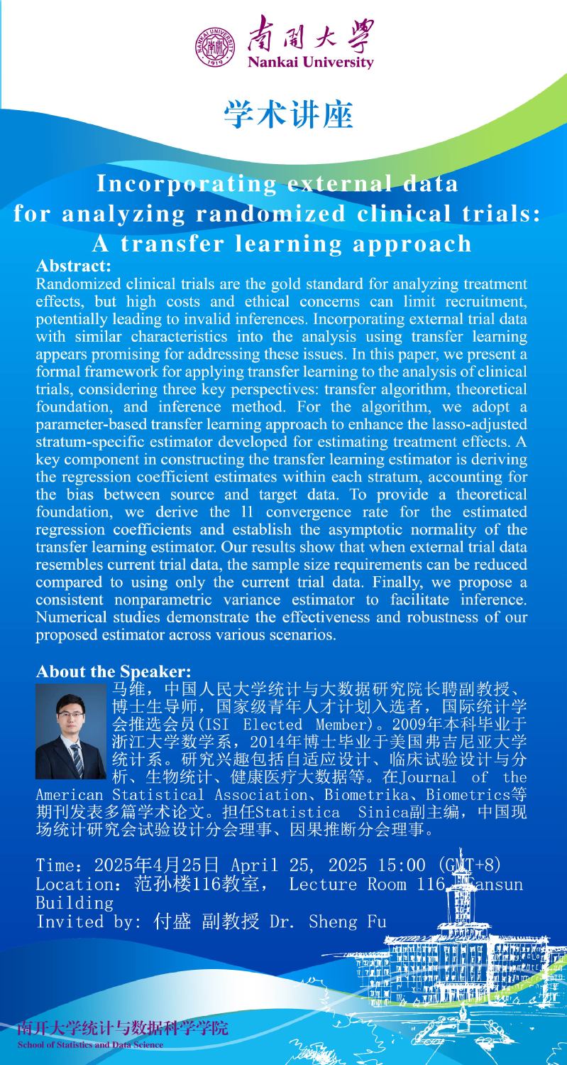Incorporating external data for analyzing randomized clinical trials: A transfer learning approach(马维)