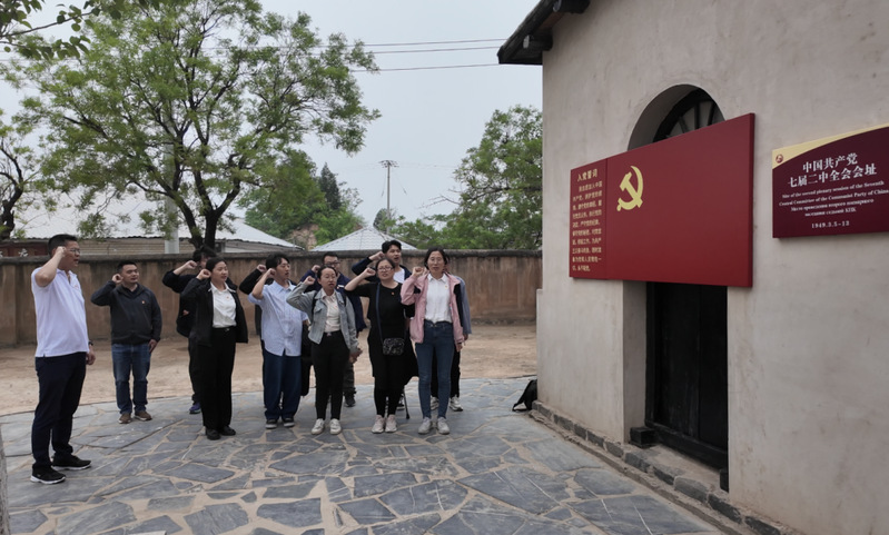 在西柏坡红色教育基地,全体师生党员沉浸式学习追忆党在建国前夕的峥嵘岁月。在中共中央旧址,师生党员从领导人故居的历史文物细节中体悟革命岁月中信仰力量、从土房土炕砖瓦中感受老一辈革命家的优良作风。在第七届二中全会会址,全体党员重温入党誓词,以庄严宣誓致敬伟大革命先烈。