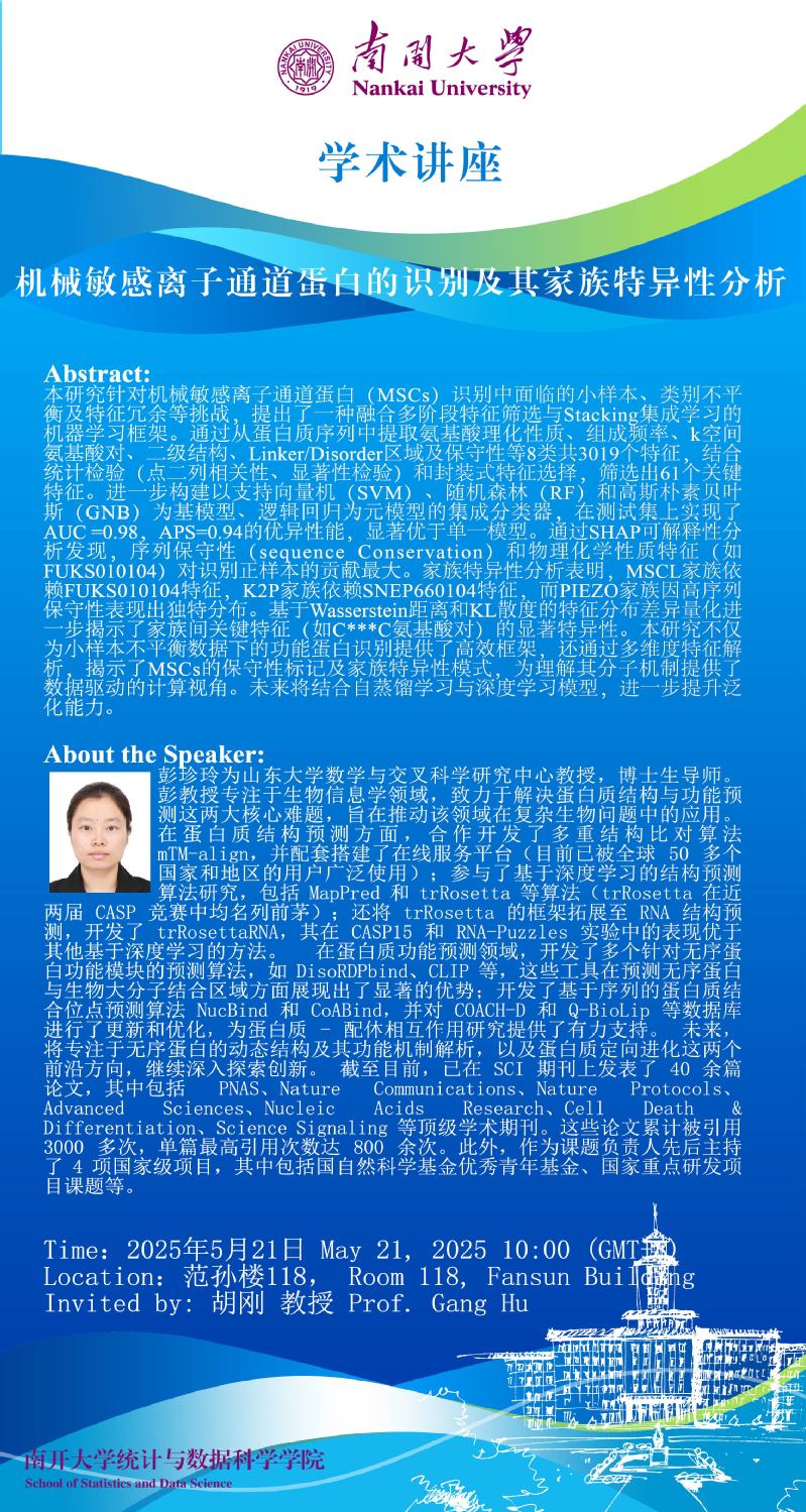 机械敏感离子通道蛋白的识别及其家族特异性分析(彭珍玲)