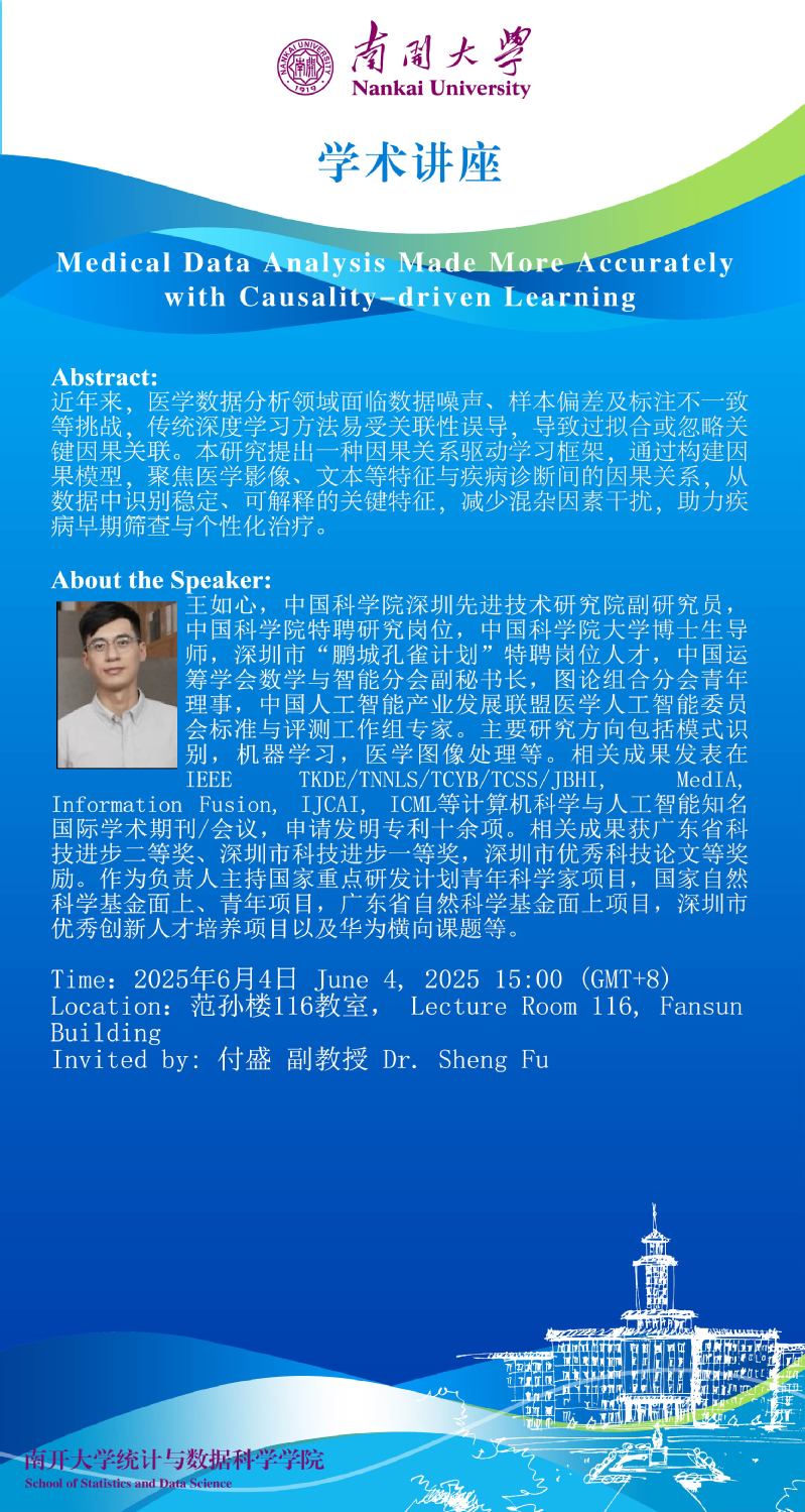 Medical Data Analysis Made More Accurately with Causality-driven Learning(王如心)