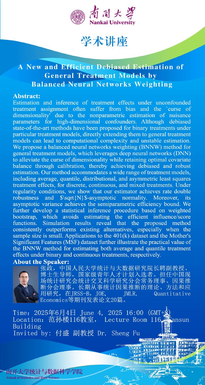A New and Efficient Debiased Estimation of General Treatment Models by Balanced Neural Networks Weighting(张政)