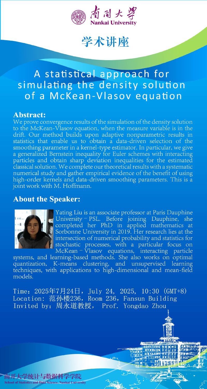A statistical approach for simulating the density solution of a McKean-Vlasov equation(Yating Liu)