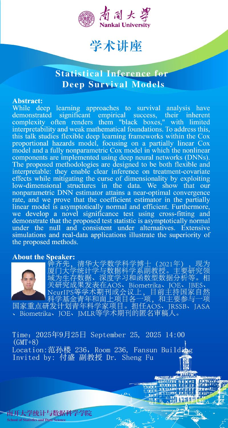 Statistical inference for Deep Survival Models(钟齐先)
