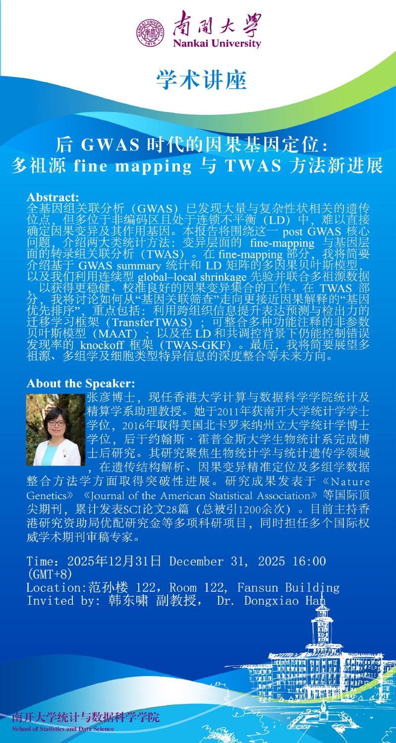 后 GWAS 时代的因果基因定位:多祖源 fine mapping 与 TWAS 方法新进展(张彦)
